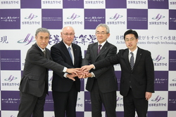 今後はオフィシャルパートナーとして、今後様々な形で全面的にご支援を頂こととなりました。相互に発展できるよう日本道路株式会社様と共に、今後とも教育活動・スポーツを通しての人づくり、そして社会貢献活動に取り組んで参ります。