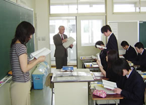 1回目は国語の研究授業が行なわれ,佐藤信衞教諭が2年生古文の授業を,中順子教諭が1年生の国語総合(現代文)の授業を展開し,全員の教職員がその授業を見守った。