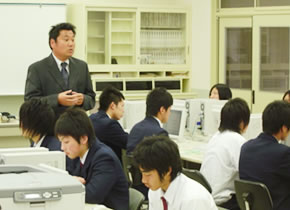 今回研究授業で取り上げた教科は,教養コースの必修科目となっている「情報実習」という科目。授業者として高橋教諭と岡村教諭が教壇に立ち,他の先生方がその授業を参観して,次に行なわれた授業研究会に臨んだ。 |
