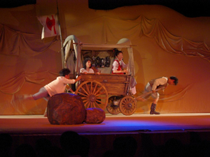 これは花巻地区の高等学校が合同で年1回行なっているもので,基本的には演劇・音楽・古典芸能の3つを輪番制で鑑賞している。今年は,演劇の順番で,東京演劇集団“風”の看板演目である「肝っ玉おっ母とその子供たち − あとから生まれてくる人たちに 」を鑑賞した。